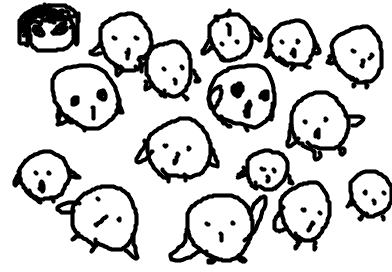 丸を書く練習をする→目とくちばしと手足をつけたくなる→わーいしろろ!