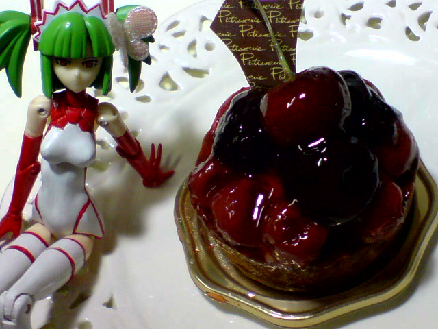 たまにはケーキとか食べてみる。ベリーのタルトにレースのお皿……一目惚れして買ったものですが恥ずかしくて普段使えません。ツガル用。